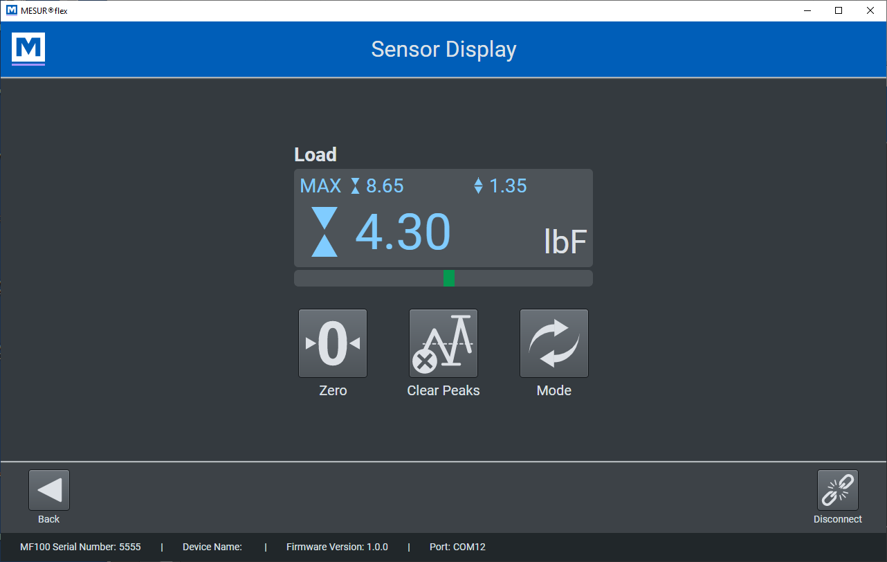 Use the intuitive MESUR®Flex wizard to set sensor capacity, assign unique identifiers, and complete step-by-step calibrations. The software provides instant access to peak, real-time, and time-averaged data with customizable measurement units. For advanced users, an extensive library of serial commands allows for seamless integration into your existing data collection systems.